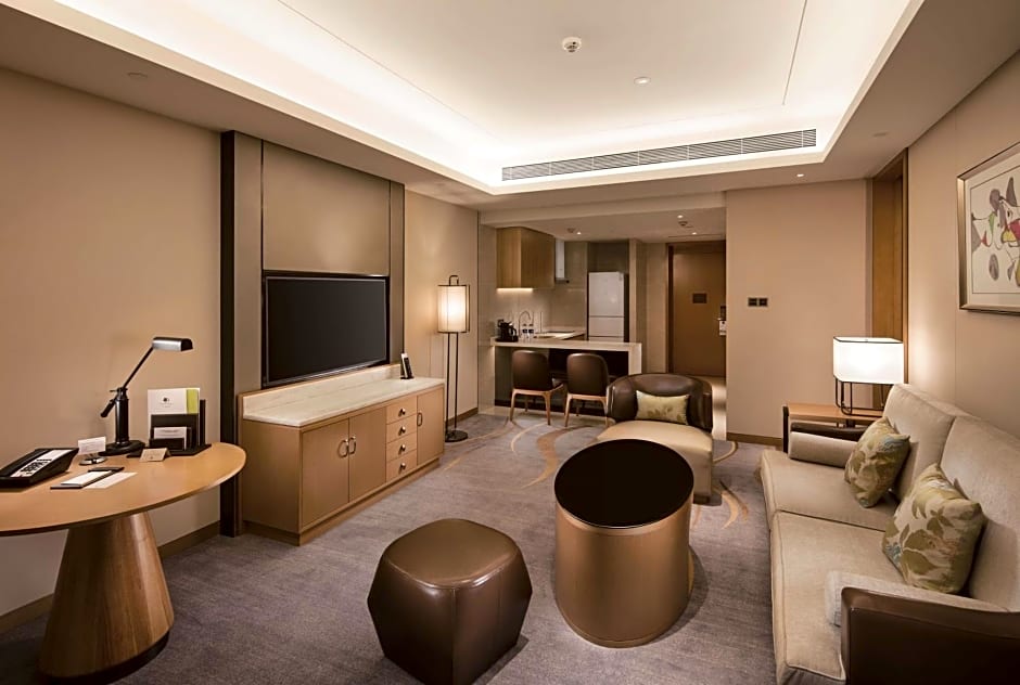 Located on the 23-25 floors, this spacious suite includes a living room, dressing room and bedroom. It has a flat-screen TV, ergonomic chair and high-speed internet access. The bathroom features a walk-in shower and branded toiletries. Guests also have access to the executive lounge which offers the following benefits: